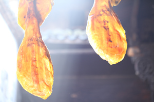 沒有優(yōu)質(zhì)的豬種,就沒有優(yōu)質(zhì)的火腿,這是火腿界質(zhì)樸的真理。許多人都把火腿想當然地理解為腌臘肉,事實上,火腿屬于發(fā)酵肉,與葡萄酒、奶酪同屬于發(fā)酵類食品。制作火腿過程中,除了腌制清洗風干程序之外,最重要的過程是發(fā)酵熟化。 從火腿生產(chǎn)到最終完成,至少需要一年的時間,如果想得到一支高水準的火腿,則需要三年的“陳釀”。