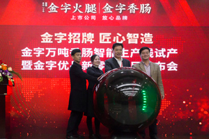 11月23號(hào),由金字火腿主辦的“金字萬(wàn)噸浙味香腸智能生產(chǎn)線試投產(chǎn)暨金字優(yōu)品新零售發(fā)布會(huì)”在浙江省農(nóng)博會(huì)上隆重舉行,這意味著金字火腿將全面發(fā)力新零售精準(zhǔn)營(yíng)銷,不斷開(kāi)拓香腸等傳統(tǒng)肉制品千億市場(chǎng)。浙江省農(nóng)業(yè)廳、金華市相關(guān)領(lǐng)導(dǎo)、新零售行業(yè)精英出席了本次發(fā)布會(huì),共同見(jiàn)證了這一盛況。在大咖云集的發(fā)布會(huì)現(xiàn)場(chǎng),金字香腸獲得了大家的交口稱贊。對(duì)此,金字生產(chǎn)負(fù)責(zé)人告訴記者,近日試產(chǎn)的金字萬(wàn)噸香腸智能生產(chǎn)線,是從德國(guó)引進(jìn)的智能化香腸生產(chǎn)線,擁有完備的可追溯系統(tǒng)、智能化車間管理系統(tǒng),標(biāo)準(zhǔn)化生產(chǎn)將大幅提高生產(chǎn)效率,確保
